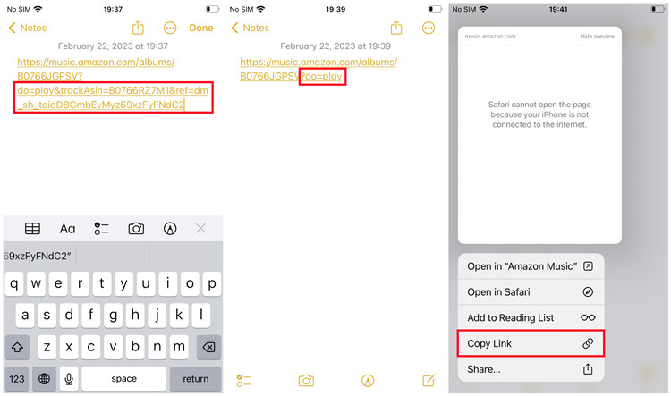 - Once the link is copied to your clipboard, paste it somewhere, such as the Notes app.