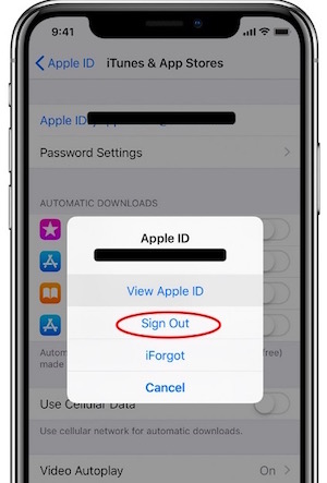 - Sign out of your main Apple ID on your device.