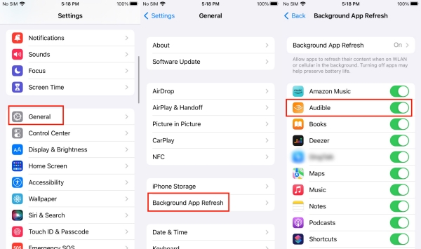 - Check Background Refresh: Go to Settings > General > Background App Refresh and make sure it is on for Audible.